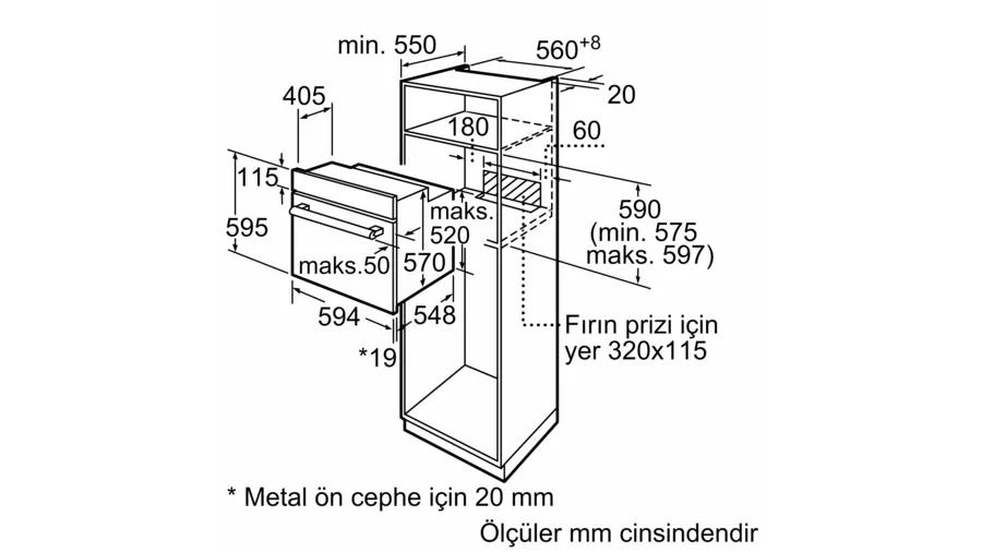 - Montaj ölçüleri (YxGxD): 575 mm - 597 mm x 560 mm - 568 mm x 550 mm