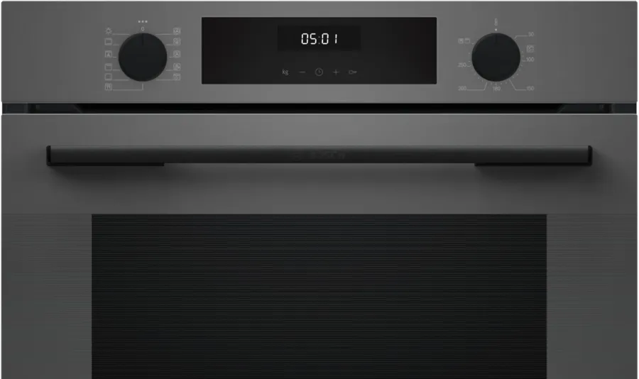 Fırın, 8 ısıtma metodu: Turbo, Alt / Üst Isıtma, Hava dolaşımlı ızgara, Büyük yüzeyli ızgara, Pizza kademesi, Alt Isıtma, Hassas sıcak hava , Sıcak hava ve buhar kombi