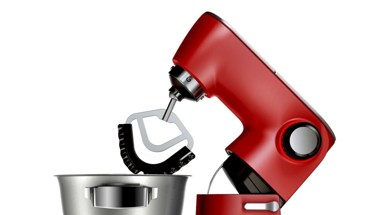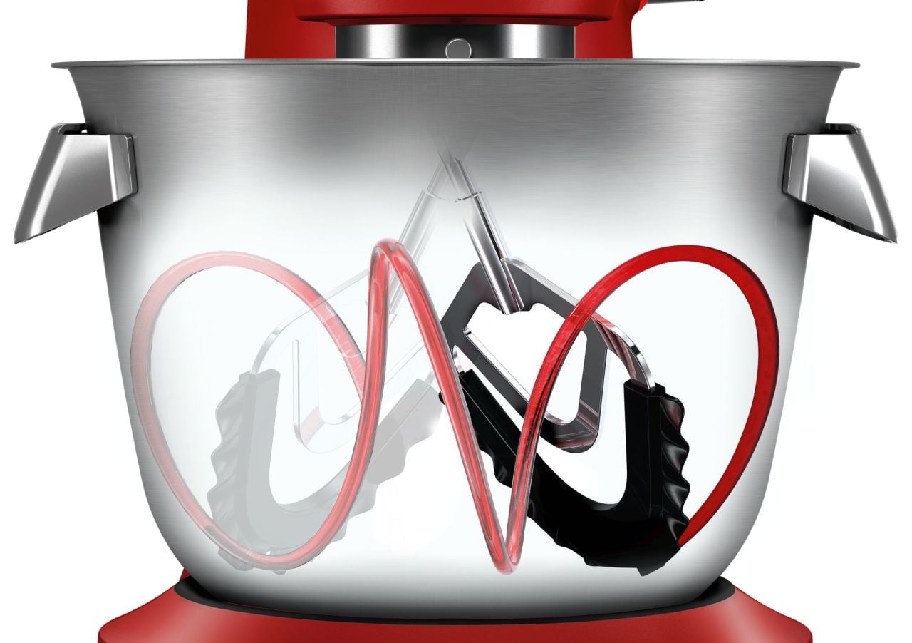 - Ekstra büyük 5,5 L paslanmaz çelik karıştırma haznesi: tek adımda büyük miktarda karışımlar ve hamurlar için ideal (3.5 kg 'a kadar kek karışımı)