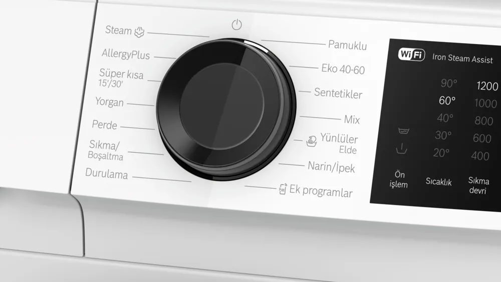- İlave yıkama programları : AllergyPlus, Steam, Perde, Sıkma-Boşaltma, Mix, Durulama, Yorgan, Süper-Kısa 15'/30', Kırışıklık önleme, Kalan süre erteleme, Başlat/Beklet tuşu, Sıcaklık seçimi, Speed Perfect, Devir sayısı seçimi